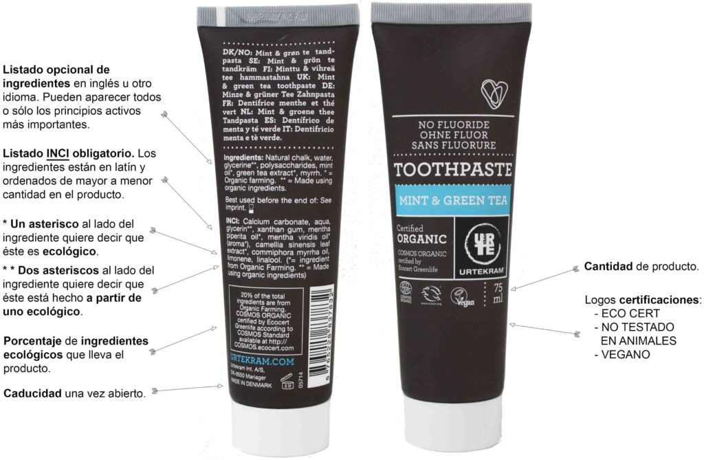 En las etiquetas de los productos cosméticos, los ingredientes deben mencionarse en inglés o en latín. En inglés se nombran las sustancias químicas utilizadas y, en latín, los derivados directos de las plantas utilizando el sistema Linneo, con nombres binomiales de género y especie.Por ejemplo, aloe vera aparecerá como ALOE BARBADENSIS.